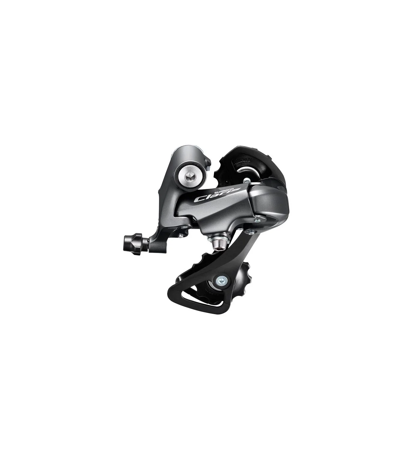 Shimano Claris RD-R2000 rear derailleur with short cage. It is compatible to cassettes with up to 32 teeth. The wide link design increases the stiffness for smooth shifting performance and long durability.