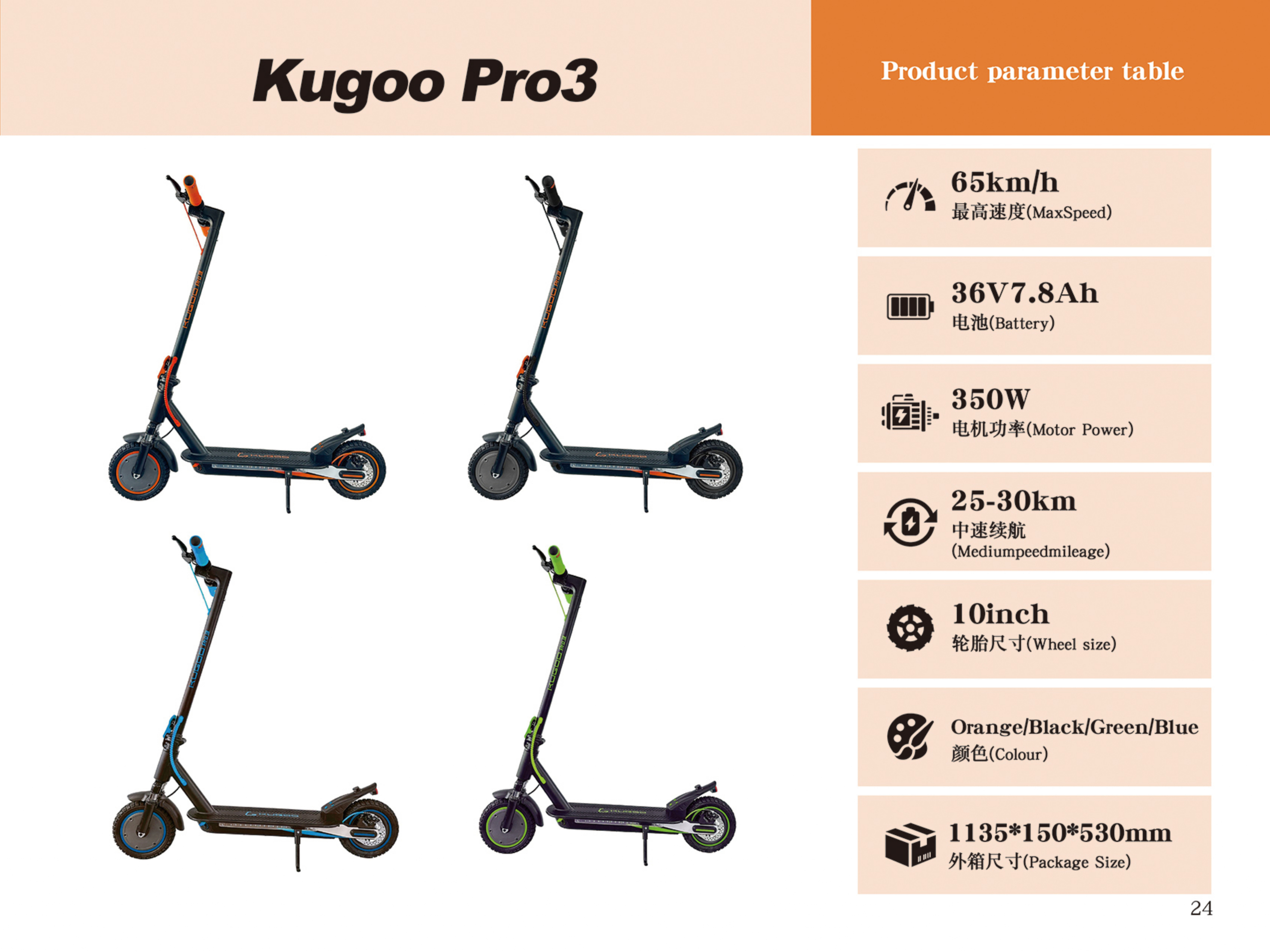 The Kugoo Pro 3 Electric Scooter is designed for short-distance commutes and quick urban trips, offering a balance of speed, portability, and practicality. Powered by a 350W brushless motor and a 36V 5.2Ah battery, it can reach speeds of 25–35 km/h while maintaining energy efficiency for daily use.
