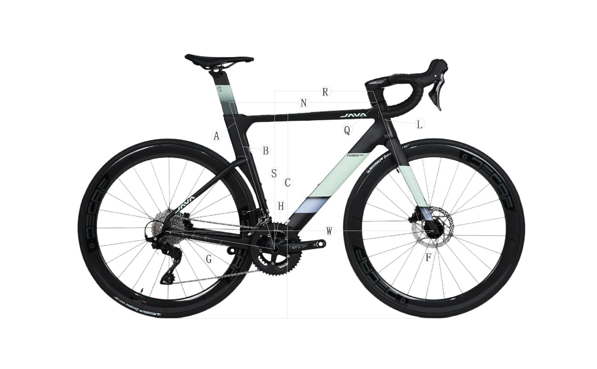 The new JAVA Fuoco Top uses the new generation Shimano 105 R7120 full groupset is an aerodynamics series road bike, It has a carbon Integrated Handlebar and JAVA Decaf carbon wheelset ready, every inch of this bike is designed to provide aero gains across the board – wind tunnel-optimized tube profiles