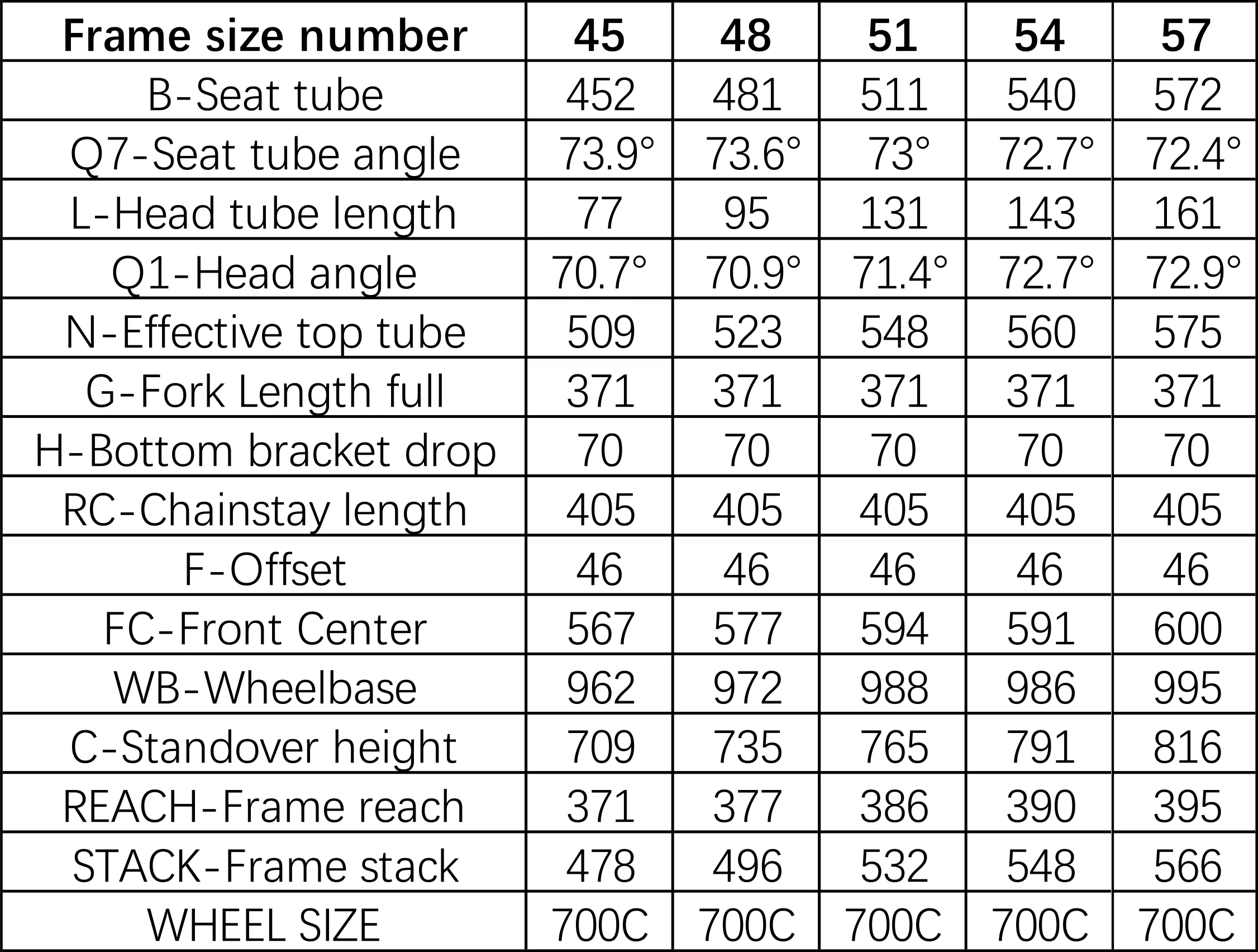 | Frame (cm) | Rider Height (cm) |