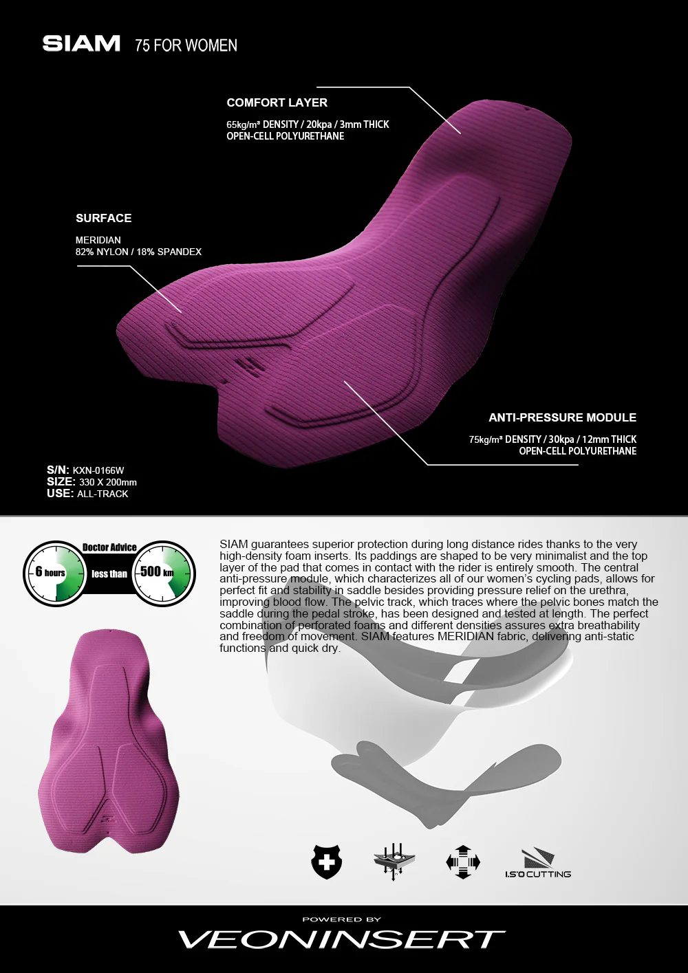 Women-specific Belgian sponge chamois for long-ride comfort