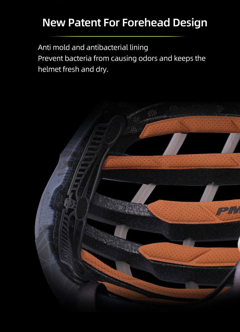 • The helmet's interior liner is treated to resist mold and bacteria, ensuring long-lasting freshness and dryness. Anti-Mold, Antibacterial Liner.