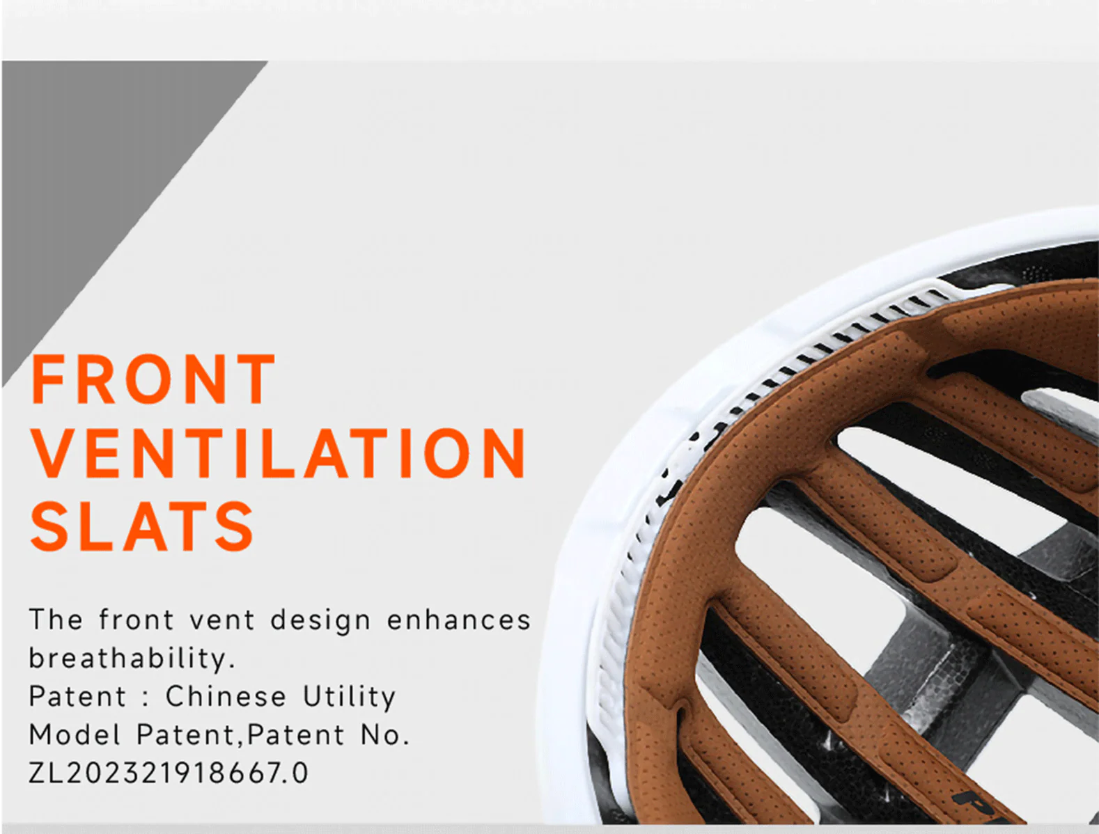 Front Ventilation Slats: The front vent design further enhances breathability (Patent: Chinese Utility Model Patent, Patent No. ZL202321918667.0).