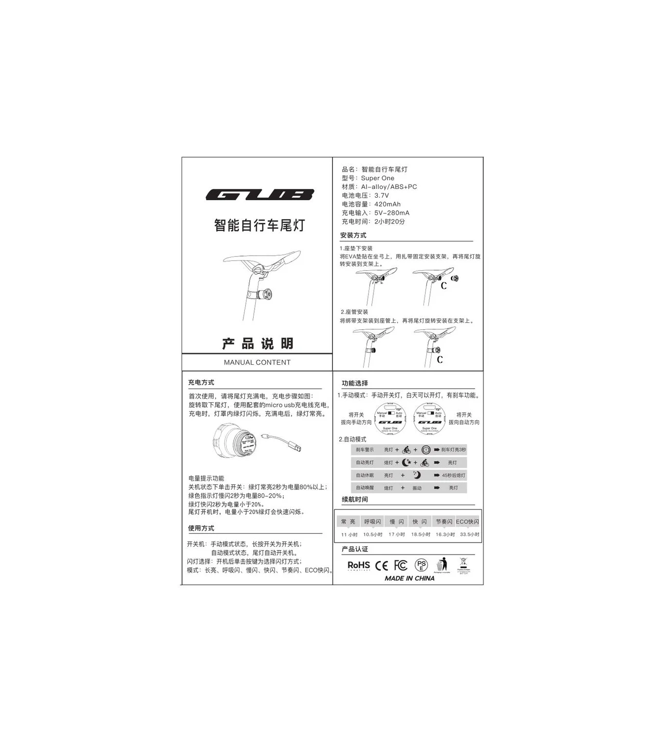 | Light Modes | Normal, Breath, Slow, Fast, Rhythm, Eco |