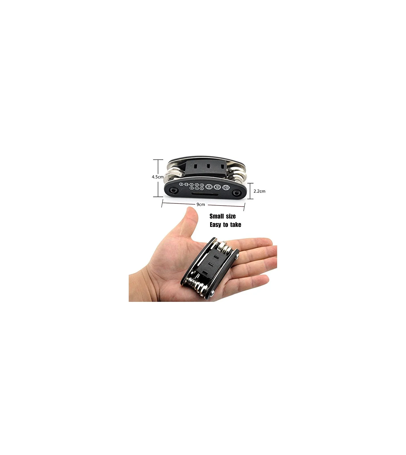 16 in 1 Multi-Function Motorcycle Bicycle Mechanic Repair Tool Kit with Portable and Compact Screwdriver Nut Driver for Any Emergency During your Cycling Must-have regular maintenance and emergency repair tool for bicycle/motorcycle enthusiasts It is a nice little repair kit while has everything you need to get you bicycle back on the road. Socket Hex Wrench 8/9/10/mm, Slotted Screwdriver, Phillips Screwdriver, Socket Extension Rod, Solid Wrench 8/10/15/mm, Hex Key Wrench 2/2.5/3/4/5/6mm, Spoke Wrench Sturdy – It is made of high quality stainless steel, durable, convenient and high functional, perfect accessories for general bike repairing Compact – It is only 3.54″x1.69″x0.98″ when fully folded, portable for outside riding.